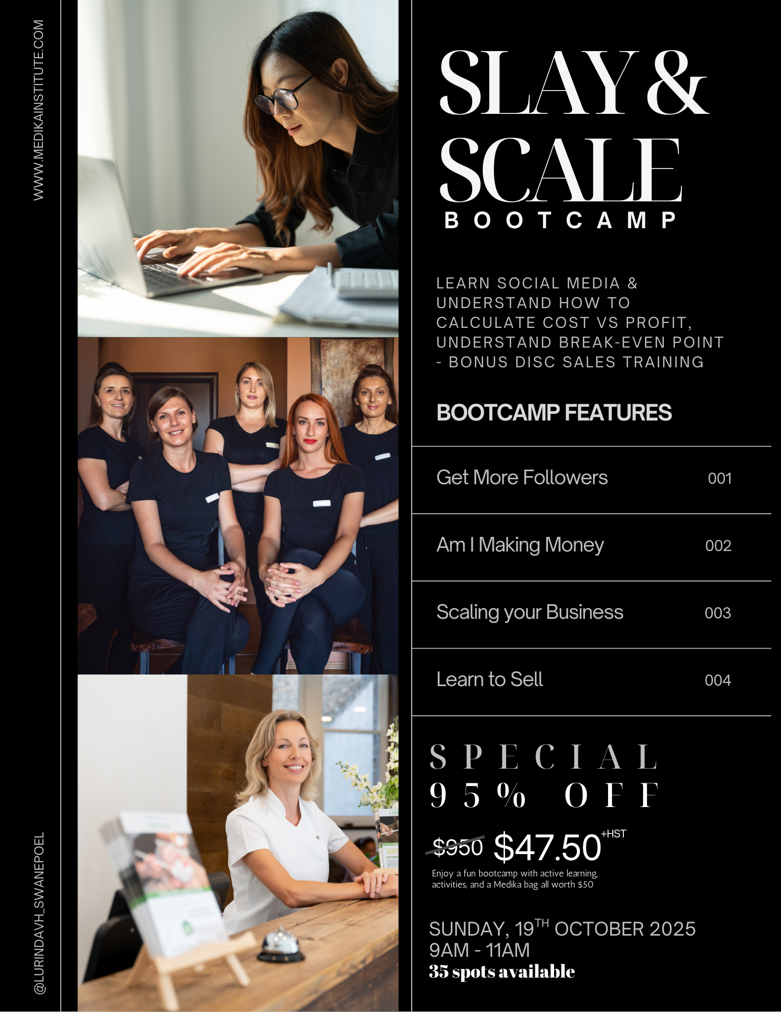 Please Note: there is an extra cost for the Slay & Scale Boot Camp and the Clinical Esthetics Dermal Needling classes. Please click on the company links below for payment.
